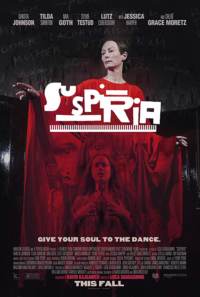 On a grey, rainy day we meet Susie (Dakota Johnson; Fifty Shades of Grey) who impresses, and Madame Blanc (Tilda Swinton; Snowpiercer, Constantine, Only Lovers Left Alive) who calmly but strongly fixates. With her acceptance to the company, Susie rooms with Sara (Mia Goth; A Cure for Wellness). As Susie deepens her stride and rank into the company, Sara wades deeper into its dark mysteries at the expense of her sanity and her soul…