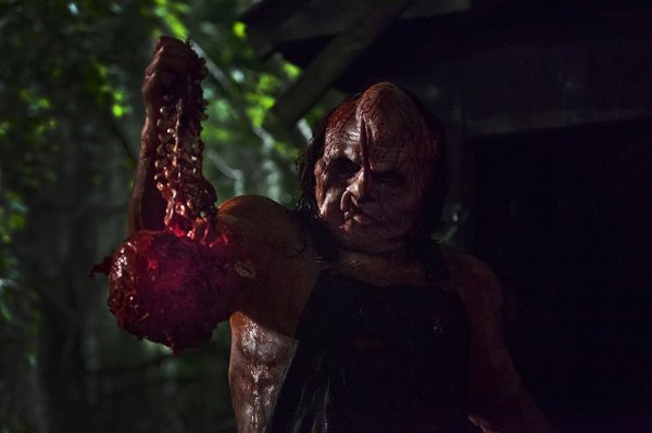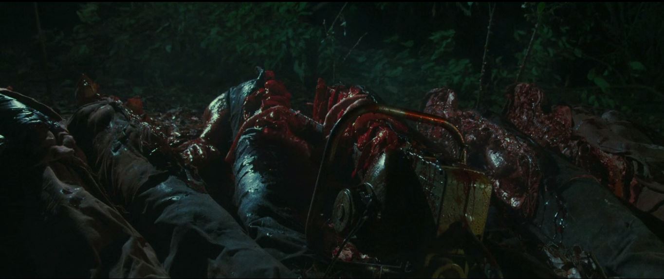 But when the kills start to add up, it all gets fun again and perhaps redeems the film for those patient enough to suffer through the first 60 minutes. The ensuing macabre shenanigans include a sex scene kill complete and a double chainsaw kill—both boasting some mean genital mutilation—along with more decapitation, torso-rending, impalement antics, a brutal curb stomp and a messy head smash. There’s even a rope-and-reel disembowelment followed by strangling someone with their own intestines. The effort is all there, but the execution doesn’t always measure up to the original.