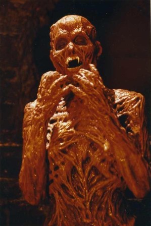 The special effects likewise parallel the original and, despite having a lower budget, the special effects are somewhat comparable to part 1. I especially enjoyed Louie’s wolfish bat hybrid make-up and Bozworth’s entomological death was also a guilty pleasure. The “melting death scenes” lacked the delicious gooiness and lengthy elaboration of part 1’s, but I must say I was thrilled with the finale death and Regine’s creature effects (as a gargoyle-like bat hybrid and later like some skinless menace out of Hellraiser).