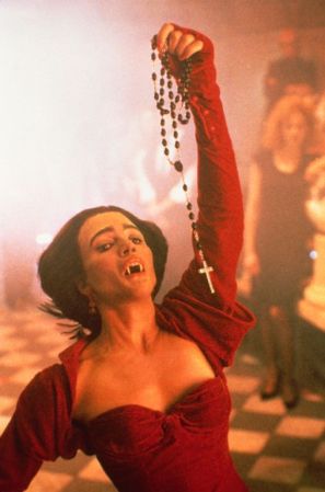 Led by the sultry Regine (Julie Carmen; In the Mouth of Madness), Bozworth (Brian Thompson; The Terminator, Alien Nation, Nightwish), Louie (Jon Gries; TerrorVision, The Monster Squad) and Belle (Russell Clark; choreographer from Vamp) round out her vampiric team seeking revenge against Charley Brewster for killing her brother, Jerry Dandridge (Chris Sarandon in Fright Night).