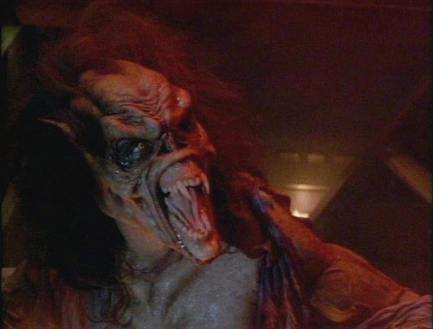 The special effects likewise parallel the original and, despite having a lower budget, the special effects are somewhat comparable to part 1. I especially enjoyed Louie’s wolfish bat hybrid make-up and Bozworth’s entomological death was also a guilty pleasure. The “melting death scenes” lacked the delicious gooiness and lengthy elaboration of part 1’s, but I must say I was thrilled with the finale death and Regine’s creature effects (as a gargoyle-like bat hybrid and later like some skinless menace out of Hellraiser).