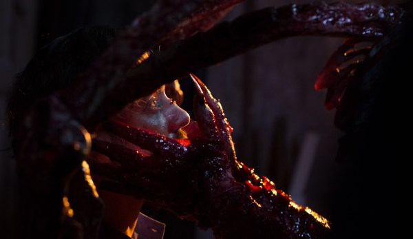 Far behind us are the replayed gags of green projectile vomit and demonic voice-box voices from our possessed victims. The gory, brutal, macabre, torture-like imagery from these exorcisms is full tilt. Falling out teeth and bloody barb wire bindings are viewed so readily that these themes feel casual to the life of an exorcist. And my, but aren’t these little demonic possession vignettes so much more graphic and almost Lovecraftian compared to even the most intense exorcism films of the past? Arachnid legs emerging and bursting out of a ruptured skull, fingernails peeling themselves off as if by infernal telekinesis, a monstrous form like a ribcage with bony spider legs emerging from a carcass (a la The Thing) and crawling after you… this is next level nightmare fuel. The monstrosities are chonky, gooey horrors with bones and limbs adorned with almost ectoplasmic chunks of tissue and viscera.