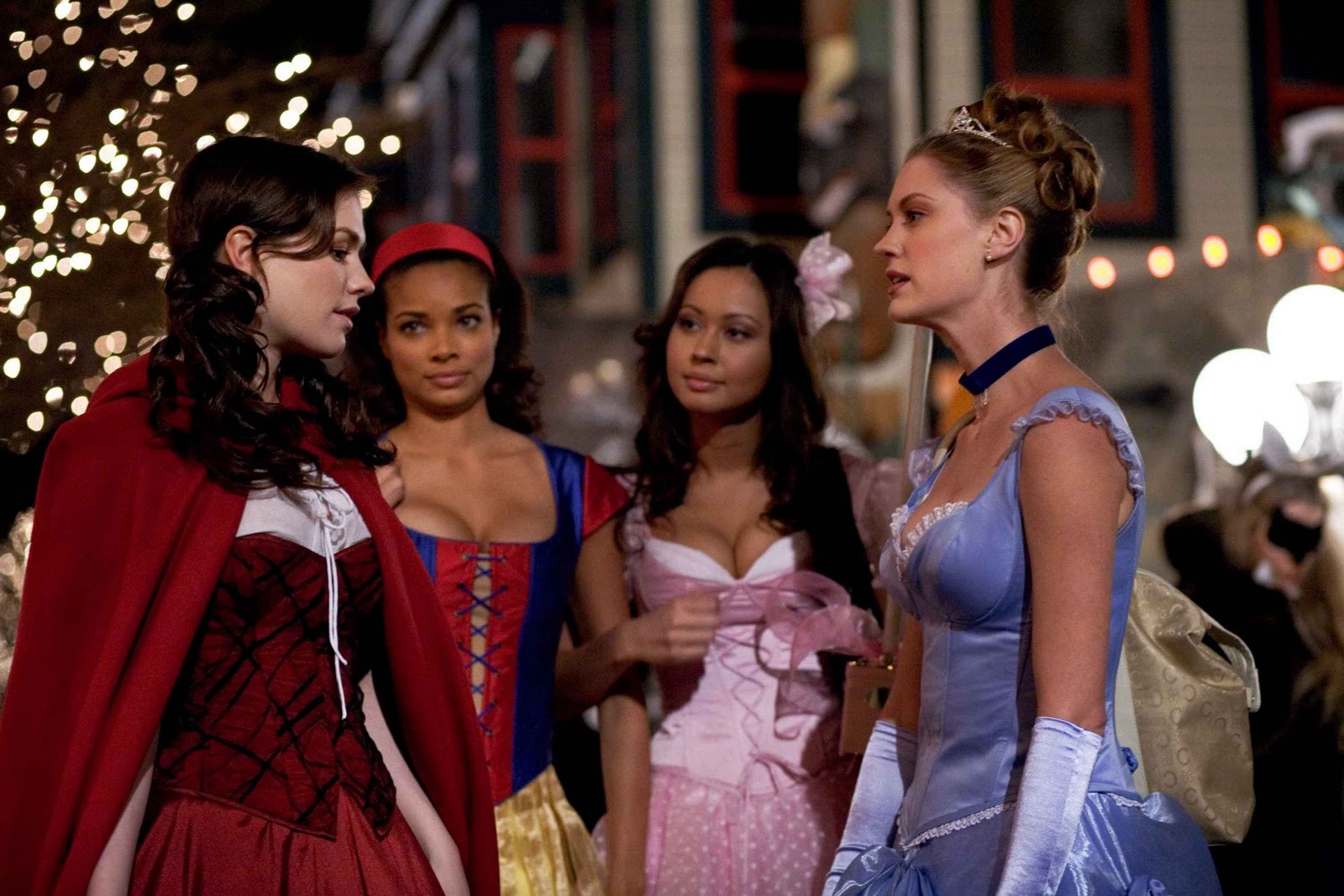 1. Four girls in cleavage-rich fairy tale costumes go out on Halloween night seeking manly fare. The girls are played by Anna Paquin (True Blood, Scream 4, Darkness), Rochelle Aytes, Moneca Delain (Lost Boys: The Tribe) and Lauren Lee Smith (Pathology). Paquin plays the shy virgin among a pack of experienced man-eaters.